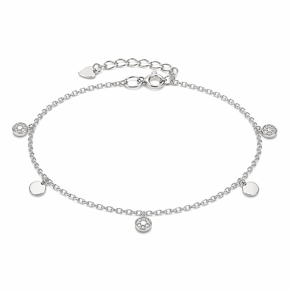 Stříbrný náramek na nohu Lucia je jako zhmotnění jemnosti a přirozeného lesku. Lehký řetízek zdobí decentní přívěsky – střídající se hladké stříbrné placičky a drobné kulaté elementy osázené čirými zirkony, které jemně zachytávají světlo při každém pohybu.