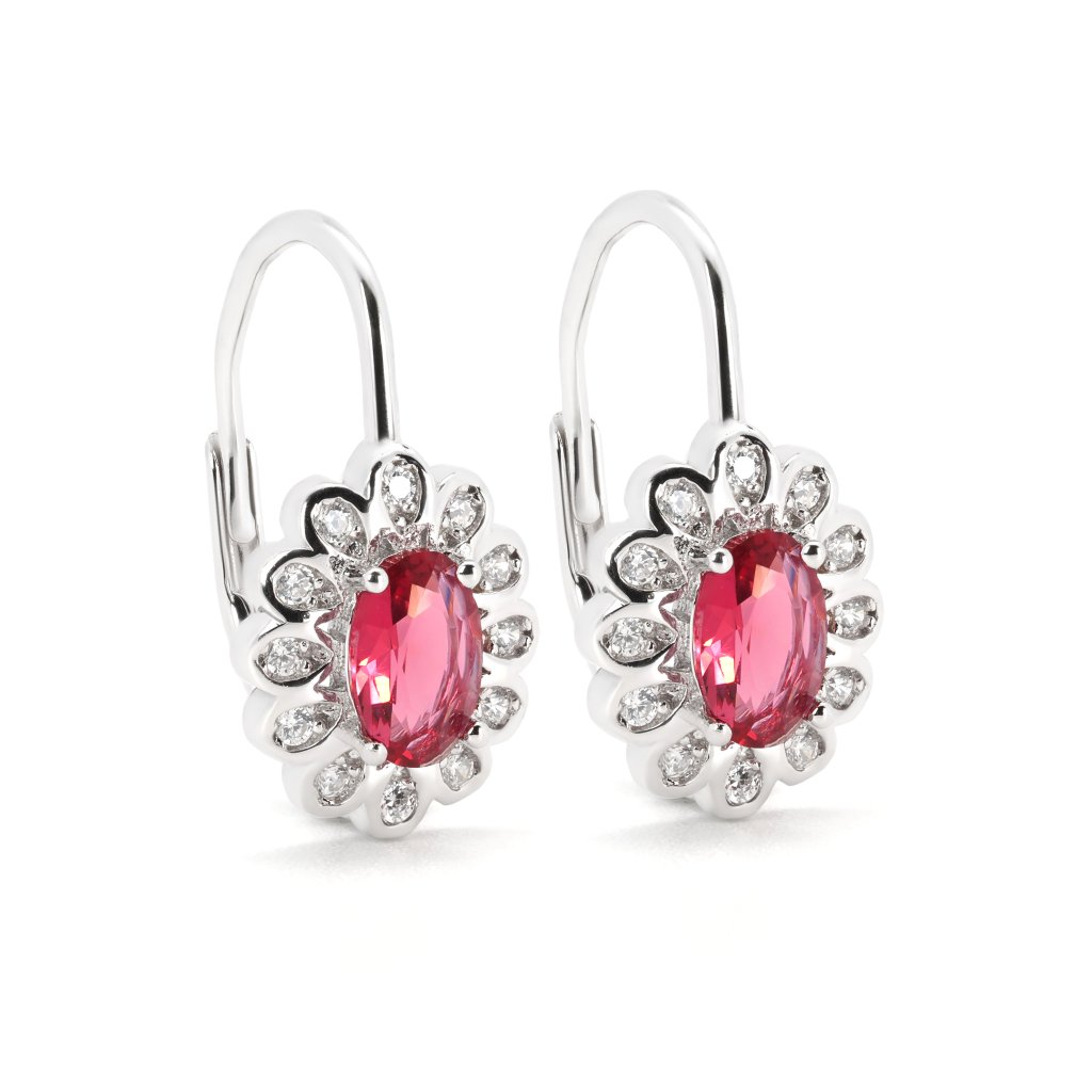 Stříbrné náušnice Ruby Bloom v sobě spojují krásu květinového designu s vášnivým kouzlem červeného kamene. Výrazný oválný kámen uprostřed je orámován jemnými čirými zirkony, které jsou uspořádány do tvaru okvětních lístků. Tento design přináší do šperku jemnost a eleganci, kterou si zamilujete.