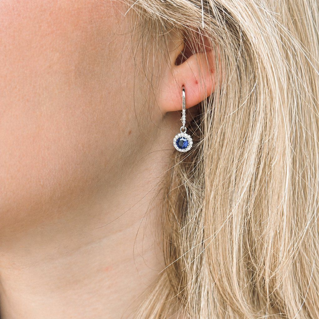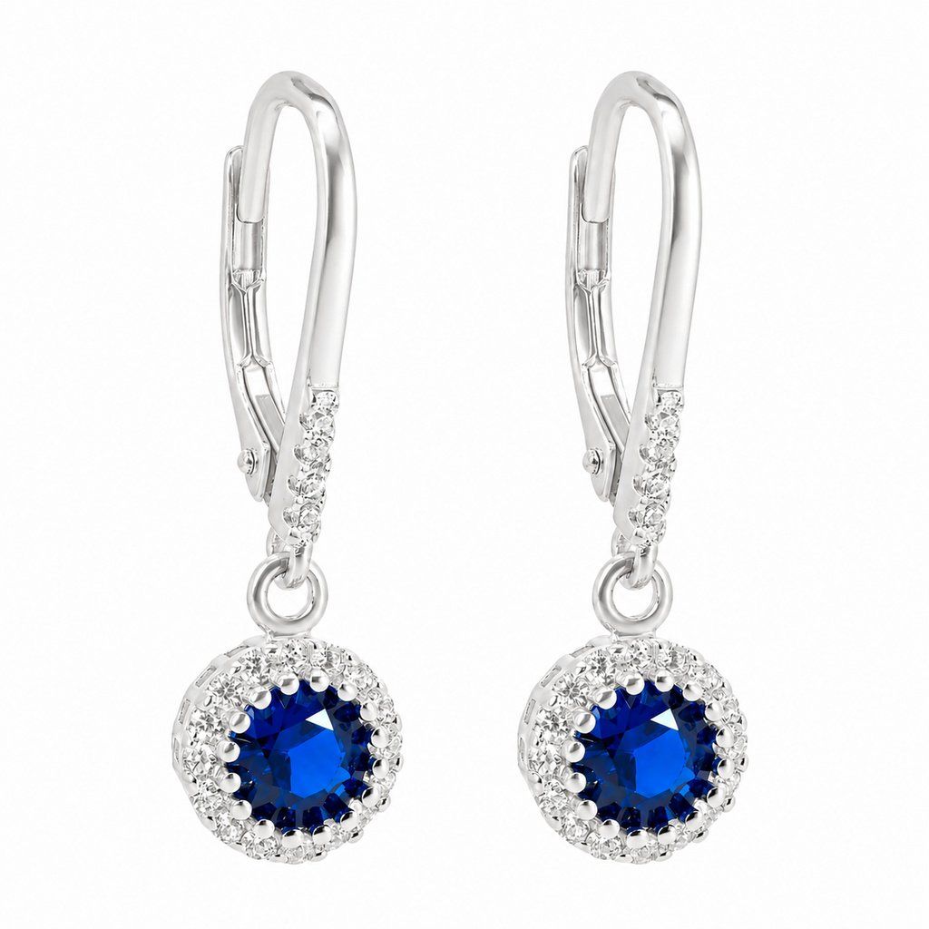 Stříbrné náušnice se safírem a zirkony