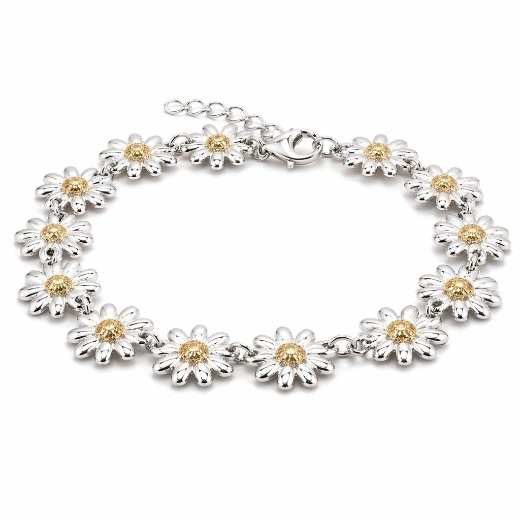 Nechte své zápěstí rozkvést s nádherným stříbrným náramkem Daisy Delight. Tento šperk vás okouzlí řadou detailně propracovaných sedmikrásek s třpytivými zlatými středy, které symbolizují čistotu, radost a nové začátky. Vyroben z kvalitního stříbra 925/1000 s rhodiovou úpravou, která zajistí trvalý lesk a ochranu před poškrábáním. Perfektní doplněk pro všechny milovnice přírodních motivů.
