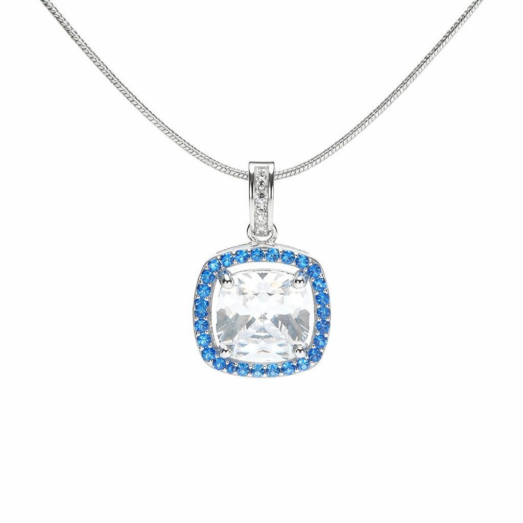 Stříbrný přívěsek s čirým a modrými zirkony, zaujme hlavně touto barevnou kombinací. Tento šperk určitě zaujme nejedno oko. Krásný čirý kámen uprostřed ozvláštněn malými modrými zirkony po celém obvodu. Svojí jednoduchostí se hodí především pro lidi, kteří mají rádi minimalismus a jednoduchost, ovšem i přes to působí velmi elegantně. Určitě tímto přívěskem uděláte sobě nebo obdarované osobě velikou radost.Doplňkové parametry
