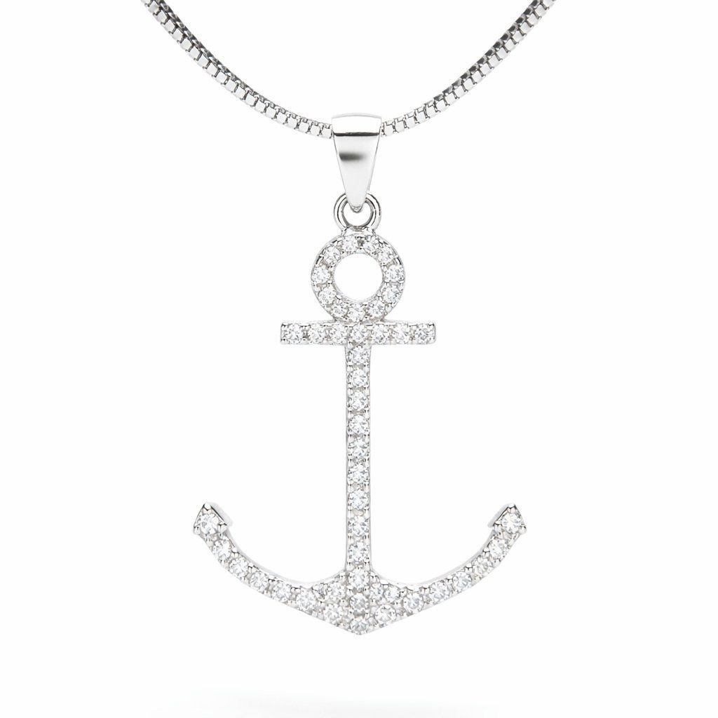 Stříbrný přívěsek kotva se zirkony je krásně ozdobený kousek, který se bude jistě vyjímat. Celá kotva je poseta čirými kubickými zirkony, které na správném světle zajistí mnoho drobných odlesků.