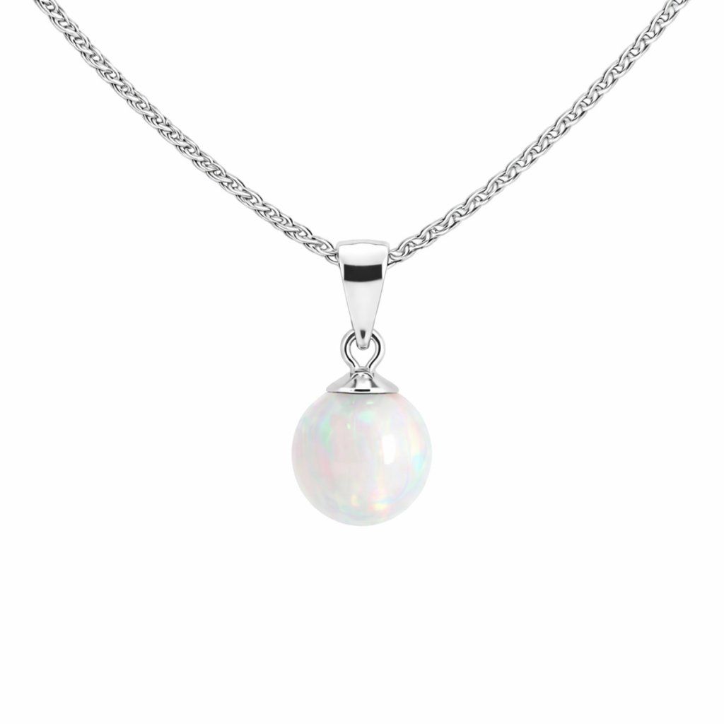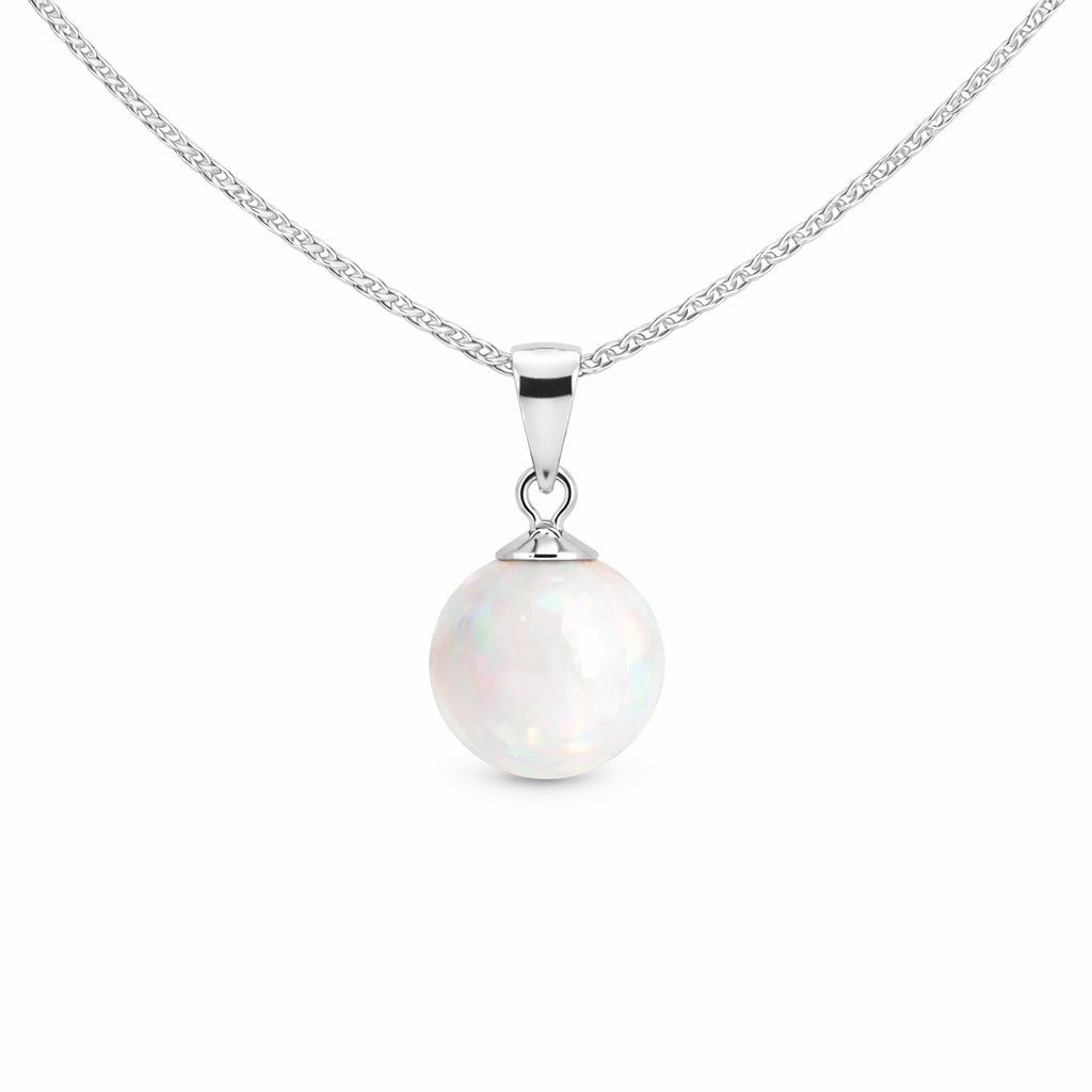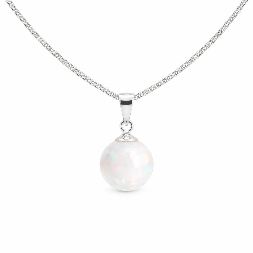 Stříbrný přívěsek kulička s bílým opálem 9 mm