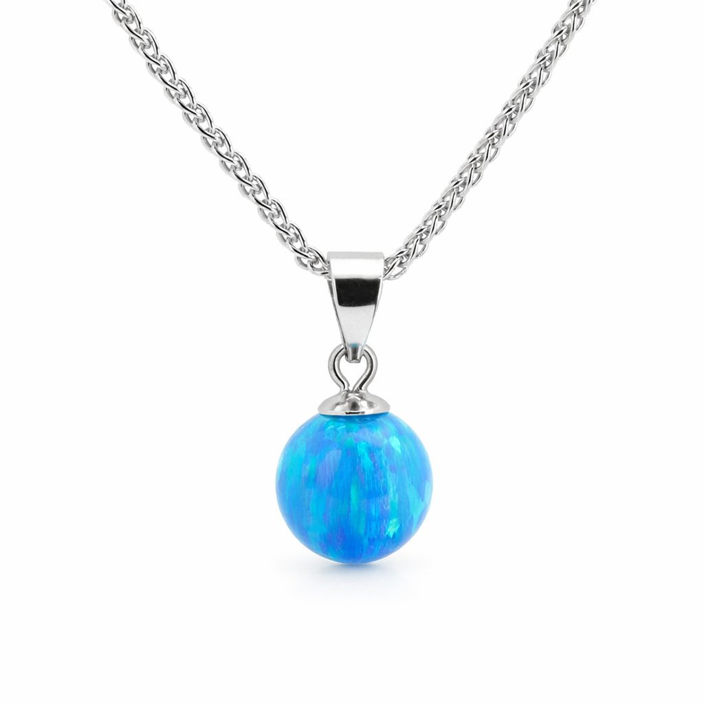 Stříbrný přívěsek kulička s modrým opálem 9 mm