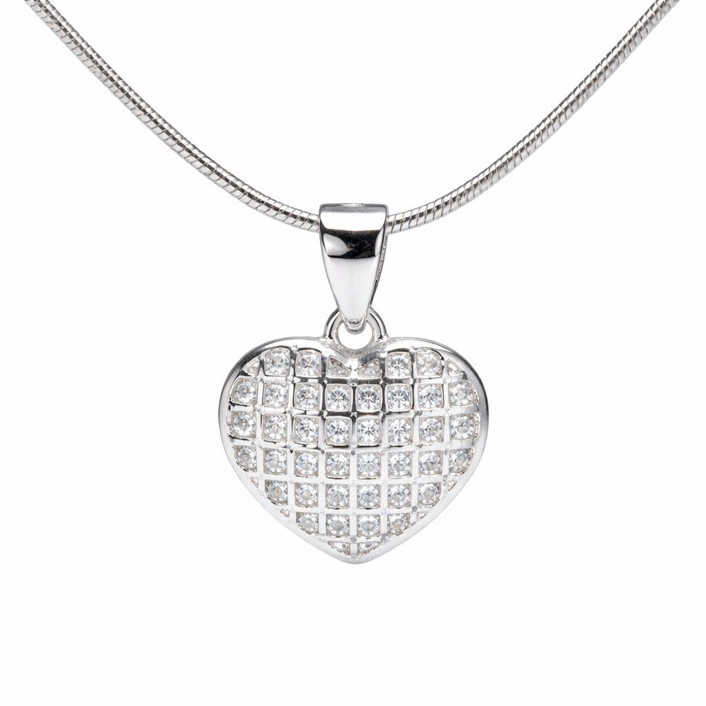 Stříbrný přívěsek srdíčko se zirkony, je velmi tradiční tvarem, ale nezvykle uspořádané zirkony, tvoří elegantní vzhled. Třpytivé čiré kubické zirkony, které jsou uspořádány do čtvercových okének, vypadají opravdu nádherně, především zaujmou mnoho lidí. Zejména podtrhnou krásně lesklé stříbro, které tvoří kostru přívěsku. Krásný a zajímavý šperk, který se hodí do každodenního života, ovšem i na speciální událost.Doplňkové parametry