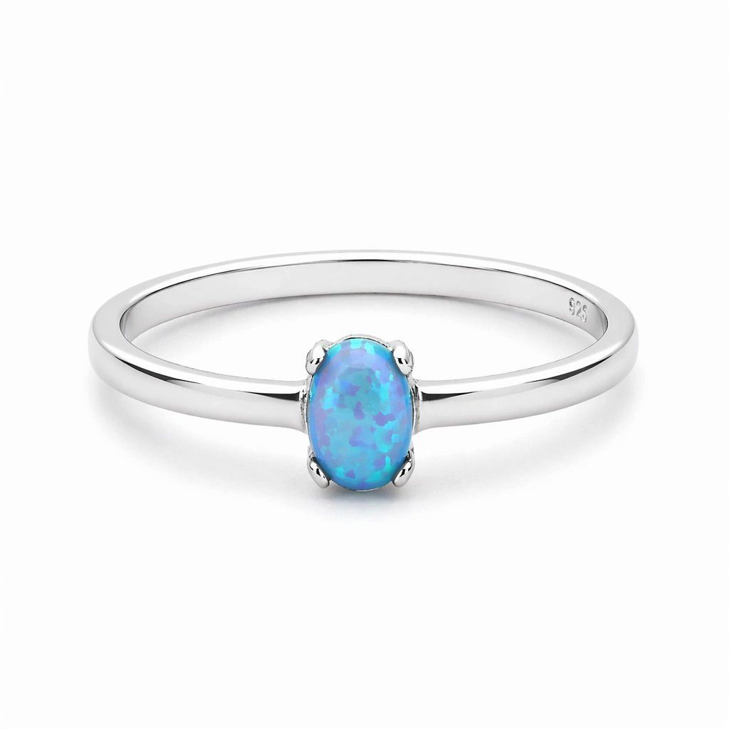 Opál je symbolem intuice, kreativity a emocí. Modrá barva navozuje pocit klidu a harmonie, což dělá z tohoto prstenu nejen elegantní doplněk, ale i talisman pro každodenní radost.
