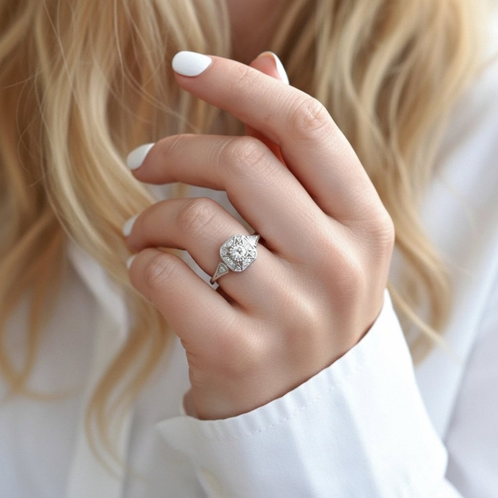 Prsten čerpá inspiraci z art deco stylu, kde se snoubí symetrie, precizní linie a oslnivý třpyt. Jeho design symbolizuje luxus, sofistikovanost a smysl pro krásu, což z něj činí ideální doplněk pro ženu s vytříbeným vkusem.